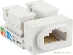 8线式六类插座模块,全金属化簧片结构,模块化设计,用于线缆的快速接续和成端。1、IDC:磷青铜,镀银(20~50uinch),适用线径为0.4~0.6mm,卡接寿命不小于200次;2、8线插针:磷青铜,镀金(20~50uinch),插头插座可重复插拔不小于750;3、阻燃性:塑料件采用PPO+PC注塑而成,满足国际标准;4、接触电阻:正常大气压条件下不大于2.5mΩ(不含体电阻);5、绝缘电阻:正常大气压条件下不小于1000MΩ;6、抗电强度:DC 1000V(AC、700V)1分钟内无击穿和飞弧现象;7、标识:完善、清晰的标识管理系统;8、标准:依据国际标准ISO/IEC11801;TIA/EIA568设计制造。