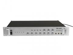 一、技术参数三路话筒输入,三路线路输入,两路线路输出,其中一路话筒有默认优先功能,有高低音调节功能,本产品带有U盘解码功能,支持MP3、WMA格式。便于紧急广播,功率输出短路保护警告、自带提示音报警。额定功率:350W输出形式:1.定压70V/120V 2.定阻4-16欧姆频率响应:40Hz-18KHz±0.5dB信噪比:话筒部分为>70dB,线路部分为>76dB电源电源:AC220体积:482*308*88mm3 MIC inputs , 3 Aux inputs ,2 Aux outputs,MIC1 with Mute priority function, treble and bass..This product is with USB decoding function,MP3,WMA formats.very suitable for public broadcasting, signal output short circuit protection.Rated output power: 350W.Output Mode: 1,the fixed voltage : 70V/120V 2,fixed resistance:4-16ohmFrequency response:40Hz-18KHz±0.5dBS/n ratio: MIC part>70dB,Circuit part>76dBVoltage:AC 220VVolume:482*308*88mm二、使用时注意事项1. 使用AC220V(50Hz-60Hz)2. 不要把通风口堵死,以免影响散热效果。3. 应避免不必要负载短路。4. 播放MP3时,如果话筒.线路不使用的将旋纽关闭。5. 若机器出现异常现象,非专业人员不得打开机器进行维修,以免发生电击事故。