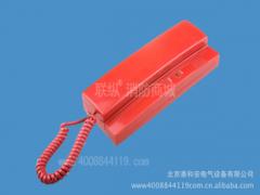 1概述HY5716B总线式消防电话分机(以下简称本机)是总线式消防电话系统的组成设备之一,须与HY5711B总线式消防电话总机配合使用。当发生紧急情况时,摘下电话手柄呼叫消防电话总机。本机拨码开关预置7位编码,有效编码范围1-99。编码可根据工程需要在安装时设定。2基本功能2.1摘下电话手柄呼叫总机,若总机应答,则本机与总机之间可以通话。2.2本机收到总机呼叫时自动振铃。此时若本机举机应答,则本机与总机之间可以通话。2.3本机正常监视状态时,工作指示灯闪烁以指示工作正常。3主要技术指标环境温度:-10~55℃相对湿度:≤95%大气压力:86~106kPa环境噪声:≤60dB频率响应:300~3400Hz振铃声级:≥70dB待机状态耗电:<1mA通话状态耗电:<22mA尺寸和重量(外形如右图):宽 度:80mm高 度:210mm厚 度:40mm(包括手柄)重 量:286g安装孔间距:135mm4安装方法4.1设备从包装箱取出后,检查本机外观是否良好。本机为壁挂式安装,可直接挂在墙壁上或挂在其他现场控制设备的侧面,挂孔在设备上方,水平距离113mm。4.2本机同HY5711B电话总机之间通过两总线相连,两总线分正负极性。安装本机的导线应选用截面积大于1平方毫米的双色双绞线。注意:红色为正,黑色为负。4.3改变分机后部拨码开关,可改变分机地址编码。4.4本机应安装在干燥、通风、无腐蚀性气体的地方。5.调试5.1调试时与HY5711B总线式消防电话总机配合试验。预置好本机编码、确定安装和接线正确无误后,接通电源。在总机上通过“设在线分机”功能操作,而将本分机登录到系统中。5.2当摘下电话手柄呼叫总机时,本机将听到回铃声,等待总机应答。总机应答后,本机与总机接通,双方实现通话。5.3本机摘机时,如果听到忙音,应把手柄放回原处,挂机。5.4如果总机呼叫本机,本机发出振铃,同时呼叫指示灯闪烁,摘下本机手柄即可与总机通话。通话完毕,挂机,通话结束。6.运行和维护本机安装调试后便可投入使用,发现故障后首先判断是线路问题,还是编码开关接触不良,还是分机内部故障。如果是分机内部故障,请及时与生产厂家联系。其它故障用户应能自行排除。7.装箱HY5716B总线式消防电话分机:一部使用说明书:一份