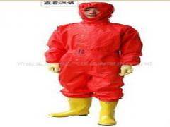 轻型防化服防化服是消防员进入化学危险物品或腐蚀性物品火灾事故现场,以及有毒、有害气体或事故现场,寻找火源或事故点,抢救遇险人员,进行灭火战斗和抢险救援时穿着的防护服装。采用经阻燃增处理的锦丝绸布,双面涂覆阻燃防化面胶,制成遇火只产生炭化,不常人溶滴,又能保持良好强度的胶布作为主材,经贴合-缝制-贴条工艺制成服装主体和手套,并配以阻燃、防化、耐电压、抗刺穿靴构成成套服装轻型防化服主要