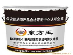 NCB(BE-1)室内超薄型钢结构防火涂料NCB(BE-1)室内超薄型钢结构防火涂料是本公司引进国际的先进技术,采用优质原材料,科学的技术路线在特定的工艺条件下精制而成,本产品具有较强的耐火性能,对钢结构具有防火隔热,遇火时膨胀发泡形成致密均匀的碳化泡沫状的防火隔热层。从而提高钢结构的耐火极限,满足钢结构建筑设计防火规范规定的要求。以便帮助人群脱离火场和保护财产的作用。一、使用范围:本产品广泛适用于工业厂房、学校、影剧院、购物广场、体艺馆、宾馆和工矿企事业单位的钢结构建筑。获得建筑行业、施工单位及设计院的一致好评,深受广大用户的亲睐。经国家防火建筑材料质量监督检验中心检测,指标优于 GBl4907 - 2002 《钢结构防火涂料》的规定,性能优良。 二、产品特性1.本产品由各种热塑性高分子材料和多种阻燃材料组成为一个协调的防火体系。在一定温度下经发泡膨胀产生吸热反应,消耗大量热量,降低燃烧温度,分解出特定隋性气体,阻止氧化反应,降低环境温度,延缓热量传递,从而达到防火效果。2.本产品为单组份自干挥发性涂料,涂层通过多层连续不同厚度涂装达到不同耐火等级。3.本产品涂层厚度为0.3-2、0mm之间,能满足0.5h-2h耐火极限的要求。涂层表干较快,经过10-15天左右的养护期,涂层成干膜后无味、无毒、坚硬、耐敲击、耐振动。4.本产品不含苯类及石棉材料,高热发泡后不产生有毒气体及浓烟,实干后不产生有刺激性气味,对人体无害。三、产品技术性能产品执行标准:GB14907-2002《钢结构防火涂料》