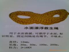 用于水面救援,可漂浮于水面,标识明显,固定间隔处有绳节,不吸水。直径:12mm;长度:30m、50m、100m、200m。 拉力:≥18KN