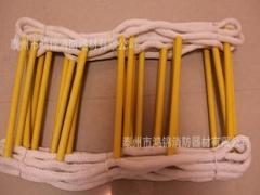 软梯、尼龙绳梯材料:高强丙纶此产品为织制绳塑脂管软梯,长度有5m、10m、15m、20m等。此软梯宽度为35cm左右,横档间距为33cm,边框绳粗18cm。边框也有绞制绳。横管也有方管软梯、木管软梯。此软梯广泛应用于消防工程、船用救生使用。