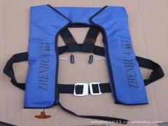 CE套头式手拉救生衣充气、手动充气救生衣:ZHGQYT-0521型套头式手动充气救生衣,是按照欧洲标准 EN396:1993及EN396/A:1998设计制造,并参照国际标准MSC:81(70)、交通部标准JT346-2004的有关要求。此种救生衣气胀前小巧轻盈、穿着舒适便利;气胀后浮力大、浮力持续时间长,水上自动扶正功能特佳。目前已被船界认同,是传统泡沫救生衣的最新替代产品。材质:TPU尼龙复合荧光橙,单气囊、自动、手动、手自动充气、33g二氧化碳储气钢瓶。主要性能指标:1.气囊充气容积:16.5升2.囊内压缩气体重量:33克3.充气时间:4.浮力:16kg5.囊内气体保存时间:>5天6.二氧化碳储气钢瓶:33g二氧化碳储气钢瓶 ,一次性,可更换7.气囊内大气压:<0.2kg8.头肩部浮出水面后倾角:30—45度9.口部与水面距离:>120mm10.配有双音求救哨11.反光标识:“SOLAS“高强级专用反光膜。自动充气救生衣使用说明:一、穿戴使用前说明使用前须检查下述事项:1、检查救生衣是否有破损:确保救生衣无裂缝或刺洞。外罩上的这类破损表明充气气室可能已经与导致破损的部件接触。如果发现这些瑕疵,在进行维修检测前不能继续使用。2、检查自动充气装置所处状况自动充气装置的指示部件会告知您自动充气装置是否已经正确安装待使用。请参照自动充气装置附近的充气装置指示部件检查说明。3、检查CO2钢瓶当自动充气装置发生作用的时候,装有CO2气体的钢瓶会对救生衣充气。需要检查安装的CO2钢瓶尺寸正确并且先前未使用过。检查钢瓶时,将钢瓶拧下,观察螺口平面。钢瓶上无显示内装气体是否装满的部件,如果发现螺口平面有破损现象,需更换钢瓶。参考该使用说明首页产品规格部分来选取适当尺寸的钢瓶,包括螺口尺寸和内装CO2重量。如果钢瓶OK,还需要正确旋回到自动充气装置上。CO2钢瓶的附加说明A:安装CO2钢瓶前,未正确安装自动充气装置将会导致立刻充气。B:CO2钢瓶仅能充气一次,不能再次充气使用。C:CO2钢瓶外表的保护镀层在置于环境或使用一段时间后可能会腐蚀,此时的CO2钢瓶会开始出现一些生锈迹象。这种情况下,要更换CO2钢瓶。二、再安装和指示部件检查说明 该使用说明的最后一页提供了救生衣自动充气装置再安装和指示部件检查说明。三、充气后穿戴说明充足气的救生衣将很难穿上。通过口吹管排气直到排放到容易穿上为止。使用前,先练习闭合扣具及调节步骤如下:①伸进左臂②伸进右臂③合上扣具④调紧织带四、充气说明1、自动充气——落水后自动充气装置在5秒钟内将自动充气。2、口吹充气——口吹管位于用户左侧。打开救生衣左侧,将口吹管拉直口中,吹气直到气囊变硬。如果气囊由于CO2渗透变软(经过一段时间钢瓶气体正常丧失),有必要通过口吹充气来保持足够浮力。3、冷冻条件下充气——在温度为或低于40oF(4oC)条件下,气囊变的不硬,除了自动充气外还需要进行口吹充气。 该温度条件下CO2充气时间会较长。4、其他充气说明a、注意——不要口吹充气充饱后再用CO2钢瓶进行手动充气。口吹充气后再次重复CO2充气将会破坏救生衣。b、绝不能用气泵或空气压缩机来对救生衣充气。c、用CO2充气要比通过空气充气渗透丧失要多,因此有必要通过口吹充气系统尽早补充。五、排气说明用连在口吹管上的帽盖插进口吹管末端按压口吹阀(位于口吹管末端),见图示。在按压口吹阀的同时,轻轻将气体从气囊中排出。不能将救生衣气囊卷曲来排气。如果由于某种原因口吹阀保持敞开,多次按压阀门。如果不能释放的话,该救生衣需要进行维修。六、其他使用说明1、除非您在船舱内,否则要时时穿上救生衣。2、避免会对救生衣产生磨损的所有不必要的活动。3、在尖锐物周围使用时要特别的小心。4、避免在阳光下暴晒。5、自动充气式救生衣如果落入水中或将充气系统置于不必要的水喷洒环境中,将会引起无意间充气。维护说明一、产品一般使用寿命救生衣有效期为3年,每年对气瓶中的CO2气体含量进行一次检测。救生衣的使用寿命很大程度上取决于怎样使用和维护,要避免在有太阳光的地方储藏。太阳光含有紫外线,会减弱合成材料的性能。过长时间的置于高温和湿度较大的环境中会缩短其使用寿命。我们知道这些因素会降低材料性能,每次使用环境又有所不同,因此没有一种确定的方法来预估其使用寿命。鉴于此原因,您必须遵照维护和清洁说明并进行维护和性能检查。这样才能确保救生衣的最长使用寿命。未遵照这些说明会导致救生衣功能失常,引起受伤甚至死亡。二、维护和清洁说明凉干——如果救生衣是湿的,将其挂在有镀层的衣架上彻底凉干。不要直接在太阳下晒,也不能使用任何热源。清洁——合成布料建议用温和洗涤剂湿擦。立刻擦去油渍。用清水清洗干净。●不能用机器洗●不能干洗●不能漂白三、检测用户检测——用户要按照下述建议进行检查:1、漏气测试——每两个月都要进行此项测试。使用口吹管将气囊充气放置16小时,如果气囊仍很硬,说明不漏气,处于正常工作状态。如果有漏气,需进行维修。2、口吹管阀门功能检测——移开防尘帽。救生衣充气状态下,使用帽盖上突出的部分按压阀门来测试,阀门要易压下,当松开时,要能恢复到关闭位置再次密封。3、外罩和织带的外观检测——检查外罩布,接缝,织带连接,扣具等;布褪色表明其强度减弱,通过拉紧接缝和连接