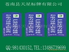 苍南县天星标牌有限公司;戍立 1998年 传业生产, 安全牌、标志牌、交通标志牌、公路指示牌、通信标牌、铝标牌、反光标牌、搪瓷牌、夜光牌、高光牌、滴胶铭牌,纪念章,纪念币、禁止标志牌、警告标志牌、指令标志牌、消防标志牌、电力安全标志牌、环境保护标志牌、矿山安全标志牌、电力警示牌、危险品标志牌、标语牌、胸章、肩徽门号牌、铭牌等标牌的专业生产企业。科技兴业”全体员工依靠科技进步,积极推进高新技术开发,现已形成一个技术力量雄厚,员工素质高的专业型新兴企业。标志牌按,《安全标志》,《矿山安全标志》,《消防安全标志》,《工作场所职业病危害警示标识》,《常用危险化学品标志》,《危险货物包装标志》、《道路交通标志》等GB国家最新标志和国家电力公司最新修订版的《电力安全标志》的图案严格印制而成。材料有PVC不干胶、PVC塑料、铝质、搪瓷、不锈钢、夜光、反光和亚克力等多种材料以满足不同用户的需要。本产品耐酸碱、抗腐蚀,在野外经风吹雨打,不会褪色。设置在厂矿、建筑工地、电力设施、交通运输等应注意安全场所,向人们敲响安全警钟,是企事业单位做好安全管理,安全生产知识宣传工作的得力助我厂一贯坚持“质量第一、信誉至上、服务周到、价格合理”的宗旨。热忱欢迎广大新老客户来函。来电订货、13486739699 0577-64276226