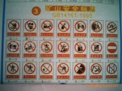苍南县大江工艺厂,位于中国商标文化城,中国标牌包装制作营销中心----浙南海滨重镇金乡。是安全牌、安全标志牌、交通标志牌、道路指示牌、反光标牌、搪瓷牌、夜光牌、禁止标志牌、警告标志牌、消防夜光标志牌、电力安全标志牌、保护标志牌、矿山安全标志牌、电力电厂警示牌、危险品标志牌、磁性材料卡、指令标志牌、通信标牌、铜铝标牌、门牌、楼牌、高光牌、不锈钢牌、铝合金标牌、滴胶铭牌,纪念章,铭牌等标牌的专业生产企业。我厂坚持“人才先导,科技兴业”的治厂方针,全体员工依靠科技进步,积极推进高新技术开发,现已形成一个技术力量雄厚,员工素质高的专业型新兴企业。标志牌按GB2894-1996《安全标志》、GB14161-1993《矿山安全标志》、GB13495《消防安全标志》、GBZ158-2003《工作场所职业病危害警示标识》、GB13609-1992《常用危险化学品标志》、GB190-1990《危险货物包装标志》、GB5768-1999《道路交通标志》、《电力生产企业安全设施规范手册》、《发电企业安全设施配置规范手册》、《电网安全设施规范配置应用手册》、等GB国家最新标志和国家电力公司最新修订版的《电力安全标志》的图案严格印制而成。材料有PVC不干胶、PVC塑料、铝质、搪瓷、不锈钢、夜光、反光和亚克力、等多种材料以满足不同用户的需要。本产品耐酸碱、抗腐蚀,在野外经风吹雨打,不会褪色。设置在厂矿、建筑工地、电力设施、交通运输等应注意安全场所,向人们敲响安全警钟,是企事业单位做好安全管理,安全生产知识宣传工作的得力助我厂一贯坚持“质量第一、信誉至上、服务周到、价格合理”的宗旨。热忱欢迎广大新老客户来函。来电订货、垂询。手13958726729。邮箱:djgy88@163.com。网址:http://djgy88.cn.alibaba.com//牌施工现场安全标志牌一览表序号安全标志牌名称数量挂设位置备注1《禁止吸烟》牌挂设在木工制作场所2《禁止烟火》牌挂设在木料堆放场所3《禁止用水灭火》牌挂设在配电室内4《禁止通行》牌挂设在井架吊篮下5《禁带火种》牌挂设在油漆、柴油仓库6《禁止跨越》牌挂设在提升卷扬机地面钢丝绳旁7《禁止攀登》牌挂设在井架上、脚手架上8《禁止外人入内》牌挂设在工地大门入口处9《禁放易燃物》牌挂设在电焊、气割焊场所10《有人维修、严禁合闸》牌有人维修时挂在开关箱上11《注意安全》牌挂设在外脚手架上和高处作业处12《当心火灾》牌挂在木料堆放场所和电气焊场所13《当心触电》牌挂在机械作业棚和配电室等处14《当心机械伤人》牌挂在机械作业场所15《当心伤手》牌挂设在木工机械场所16《当心吊物》牌挂设在提升机作业区域内17《当心扎脚》牌挂设在模板作业区域内18《当心落物》牌挂设在地面外架周边区域内19《当心坠落》牌挂设在高处作业的四口、五临边20《安全通道》牌挂设在外架斜道上和主要通道口21《必须戴安全帽》牌挂设在进入工地的大、小门口22《必须系安全带》牌挂在高空作业又没有可靠防护处23《当心塌方》牌开挖土方时挂设在基坑临边24《必须戴防护手套》牌挂设在振捣混凝土场所25《必须穿防护鞋》牌挂设在振捣混凝土场所26《当心滑跌》牌挂设在雨天易滑处郑重声明:我公司所用的材料都是一级的新料,绝对不是回收料,如有假冒愿赔偿十倍的金额。1、PVC、铝质标志牌:就是在各种材料的表面上直接丝网印刷而成。本厂品具有色彩鲜艳,外型美观,价格实惠不易掉色等特点为各个企事业单位所采用。2、搪瓷标志牌:指在1mm厚度的铁板表面涂搪瓷釉,再经高温烧制而成。本产品具有耐酸碱、耐热震、耐高温、抗冲击、在室外阳光照射不褪色,不含任何对人体有害的元素等特点,广泛应用于化工、电力和电信等腐蚀性强或须把标志牌悬挂于室外的企业。3、反光标志牌(材料有铝质反光、PVC反光、不锈钢反光):就是在各种材料的表面上贴反光膜再丝网印刷而成。在白天以其鲜艳的色彩起到明显的警示作用,在夜间或光线不足的情况下,其明亮的反光效果可以有效地增强人的识别能力,看清目标,引起警觉,为黑暗中的行人或夜间作业人员提供最有效、最可靠的安全保障,从而避免事故发生,减少人员伤亡,降低经济损失。本产品一般用于公路铁路的导向牌、指示牌,矿山、机场、安全牌,交通、施工、建筑工程、电杆反光贴、工地、电力等企业反光牌。4、夜光标志牌(材料有铝质夜光、PVC夜光、不锈钢夜光)又称蓄光标志牌、自发光标志牌和长余辉标志牌,就是在材料的表面上直接用夜光漆丝网印刷或贴夜光膜再丝网印刷而成的标志牌。是一种吸收太阳光、灯光等光源的光线后在无光源的情况下可以自己发光,具有优秀的应急自动发光能力,有效地增强人的识别能力,看清目标,引起警觉,为黑暗中的行人或夜间作业人员提供最有效、最可靠的安全保障。本产品激发时间短,发光和余辉时间长,亮度高,极稳定的物理和化学属性,极强环境适应性,极长的使用寿命,安全可靠,节约能源,绿色环保被广泛地应用于城市导视系统中,例如目前的城市道场所和需要起夜光效果的企业等。
