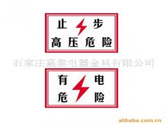 石家庄嘉泰电器金具有限公司,专业生产标示牌。材质有不锈钢、铝反光、玻璃钢、塑料等材质。可根据客户需要定做。绝缘梯,紧线器,操作杆(令克棒),超轻测高杆,刀闸检修防护架,接地线,验电器,安全帽,安全带等电器产品。其中有我们的专利产品超轻多节玻璃钢伸缩梯和刀闸检修防护架,已获得专利证书。还有我们新开发的产品超轻型圆管玻璃钢绝缘梯,每米2公斤,大大低于黄色方管的重量,携带方便。希望与你建立长期合作关系祝你工作愉快!