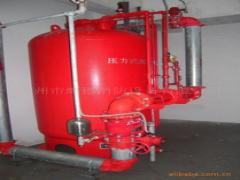泡沫-水喷淋系统1. 组成与工作原理 泡沫-水喷淋系统是在自动喷水灭火系统的基础上,增设了泡沫混合液供给设备,并通过自动控制实现在喷头喷放初期的一段时间内喷射泡沫的一种新型高效的灭火系统。它主要由自动喷水灭火系统和泡沫混合液液供给装置(压力式比例混合装置)、泡沫液输送管网等部件组成。 系统管网内充满压力水,因减压阀的作用使泡沫液储罐所提供的泡沫液压力低于管网内的水压,即通向比例混 合器泡沫液输送管道的压力比主管道水压低。此时泡沫液能充满泡沫液输送管,直至泡沫比例混合器入口,但由于单向阀的隔离作用泡沫液不会进入水管网内。当闭 式喷头动作后,湿式报警阀被打开,从报警口流出的水经延时后驱动水力警铃进行报警。同时该水流通过控制管路打开两用控制阀,使减压阀失效,泡沫储罐内压力 上升,使得泡沫液压力提升至水的压力,泡沫比例混合器进入正常工作状态。只要水流量达到比例混合器规定的最小流量时,就能够输出符合规定混合比 (3%~3.9%或6%~7%)的泡沫混合液,满足喷头灭火的需要。该系统是一套完整的自动喷水灭火系统,具有自动喷水灭火系统的全部功能,并符合泡沫系统的功能要求。系 统采用的是闭式自动洒水喷头,不具备吸气发泡功能,因此只能采用水成膜或成膜氟蛋白泡沫液。所有与泡沫液直接接触的管道、阀门、混合器等部件都应采用铜或 不锈钢等耐腐蚀材料制作;比例混合装置的泡沫液储罐应采用带胶囊的储罐。2. 主要性能要求《自动喷水灭火系统设计规范》GB50084-2005中规定了系统的三条基本要求:①湿式系统自喷水至喷泡沫的转换时间,按4L/s流量计算,不应大于3min;②泡沫比例混合器应在流量等于和大于4L/s时符合水与泡沫灭火剂的混合比的规定;③持续喷泡沫混合液的时间不应小于10min。 通过合理的设计可以满足以上三项要求。由于在系统处于准工作状态时,已将泡沫液充满管道并输送至设置于 防护区中的比例混合器,湿式阀动作后可立即启动压力比例混合装置,将混合液输送给配水支管,完成喷水至泡沫的转换。根据预计的喷头动作数量,选定适宜流量 范围的压力比例混合器,可保证在流量等于和大于4L/s时混合比为3.0%~3.9%或6.0%~7.0%。根据比例混合器的规格和预计的喷洒时间,选择 合适容量的泡沫液储罐可以保证持续喷泡沫的时间不小于10min。3. 系统的应用范围 泡沫-水喷淋系统广泛用于地下车库以及存在较多可燃液体的场所,如装卸油品的栈桥、码头、易燃液体储存仓库、卧式油罐、油泵房、燃油锅炉房、汽车库、飞机维修库等。具有能迅速扑灭油类(易燃液体)火灾,灭火效率高、节约用水、设备投入与维护、保养费用低等优点。4. 使用与维护①每月至少进行一次外观检查,各阀件及各连接处应无渗漏,各阀件应处于常态。②每3个月至少进行一次胶囊泄漏检查,如有泄漏,应及时修补或更换。③每年应抽样检验泡沫液的质量,如发现失效,应及时更换。④装置不得随意拆卸。全面检修年限为2~3年。