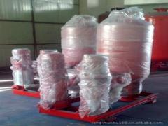 ◆工作原理 隔膜式气压给水设备,是利用无毒胶囊作为气水隔离的新型设备,一次充气,常年运行使用。工作时起动补水泵,水室进水,水压升高,气室的气体被压缩隔膜伸长;当水压下降时,气室气体膨胀,隔膜收缩,压迫水室出水。这样周而复始,通过电接点压力表和电控箱控制水泵运行,达到额定的压力和连续供水。 当发生火警,打开消火栓时,立即喷出消防充实水柱,同时电接点压力表发出信号,启动消防泵供所需消防水。◆产品特点1、泵、电控柜、隔膜式气压罐、组合管网四位一体,并配带有隔振器,无需预埋地脚孔,设计人员只需算好参数即可查得设备型号、基础尺寸等。电气设计人员无需再进行控制线路设计,只设计泵房内进线和到设备的走线。选用方便,可大大缩短设计人员的设计周期和施工人员的施工时间。2、隔膜式气压罐一次性充气持久耐用,水气隔离能预防水质的污染。3、设备占地面积小,投资省,全自动运行,无需专人看管。4、设备有双电源接口,双路电源自动(手动)切换,设备可根据设计要求制作。5、具有自动保护及故障切换功能。任何一台水泵发生故障(电气故障或水力故障)均能启动备用泵。6、可与消防中心连接(根据设计需要)。7、可以根据客户的需要选择罐、稳压方式、控制功能。8、电气主要元气件采用国产或进口名牌企业产品,质量可靠、运行稳定。◆产品结构 该设备由稳压泵两台(根据设计要求可设一台)为一用一备,隔膜式稳压罐一台,电控柜一台,仪表阀门及组合管网各一套,组成了隔膜式稳压供水设备。◆设备选型 ZW(L、W)本设备根据建设部标准图集98S205基础的性能参数做为参考,推出了两种设备型号,①ZW(L)、ZW(W)系列稳压按照建设部图集98S205图集号所设计的型号;②企业根据消防GA30-92、GA30-2002相关标准及给水设备标准规范编制的设备型号。在这里删除了稳压罐、水泵的垄断性型号,给设计及用户一个产品选择的竞争空间。本公司唐纯虎为您推荐以下型号产品使用,如:LG、GDL、CDL、ISG等型号。用户可以根据水位水箱间的位置选择合适的设备。ZW(L)消防专用增压稳压给水设备(立式隔膜罐)性能参数表。| 序号 | 增压稳压设备型号 | 消防压力(MPa)P1 | 立式隔膜式气压罐 | 配用水泵参数 | 设备运行重量(K) | 运行压力(MPa)PS1-PS2 | | 型号规格 | 消防储水容积(L) | | 标定容积 | 实际容积 | 流量 | 扬程 | 功率 | | 1 | ZW(L)-Ⅰ-X-7 | 0.10 | SQL800×0.6 | 300 | 319 | 3 | 40 | 1.5 | 1487 | 0.26-0.31 | | 2 | ZW(L)-Ⅰ-Z-10 | 0.16 | SQL800×0.6 | 150 | 159 | 3 | 40 | 1.5 | 1463 | 0.26-0.31 | | 3 | ZW(L)-Ⅰ-X-10 | 0.16 | SQL800×0.6 | 300 | 319 | 3 | 50 | 1.5 | 1509 | 0.26-0.42 | | 4 | ZW(L)-Ⅰ-X-13 | 0.22 | SQL1000×0.6 | 300 | 329 | 3 | 40 | 1.5 | 2362 | 0.35-0.40 | | 5 | ZW(L)-Ⅰ-XZ-10 | 0.16 | SQL1000×0.6 | 450 | 480 | 3 | 40 | 1.5 | 2362 | 0.33-0.38 | | 6 | ZW(L)-Ⅰ-XZ-13 | 0.22 | SQL1000×0.6 | 450 | 452 | 3 | 50 | 1.5 | 2362 | 0.41-0.46 | | 7 | ZW(L)-Ⅱ-Z-A | 0.22-0.38 | SQL800×0.6 | 150 | 159 | 3 | 60 | 2.2 | 1487 | 0.53-0.60 | | 8 | ZW(L)-Ⅱ-Z-B | 0.38-0.50 | SQL800×1.0 | 150 | 159 | 3 | 80 | 2.2 | 1548 | 0.68-0.75 | | 9 | ZW(L)-Ⅱ-Z-C | 0.50-0.65 | SQL1000×1.5 | 150 | 206 | 3 | 90 | 2.2 | 1670 | 0.81-0.86 | | 10 | ZW(L)-Ⅱ-Z-D | 0.65-0.85 | SQL1000×1.5 | 150 | 206 | 3 | 110 | 3.0 | 1736 | 1.04-1.10 | | 11 | ZW(L)-Ⅱ-Z-E | 0.85-1.00 | SQL1000×1.5 | 150 | 206 | 3 | 130 | 4.0 | 1744 | 1.21-1.27 | | 12 | ZW(L)-Ⅱ-X-A | 0.22-0.38 | SQL1000×0.6 | 300 | 302 | 3 | 60 | 2.2 | 2934 | 0.55-0.60 | | 13 | ZW(L)-Ⅱ-X-B | 0.38-0.50 | SQL1000×1.0 | 300 | 302 | 3 | 80 | 2.2 | 2544 | 0.70-0.75 | | 14 | ZW(L)-Ⅱ-X-C | 0.50-0.65 | SQL1000×1.5 | 300 | 302 | 3 | 100 | 3.0 | 2739 | 0.88-0.93 | | 15 | ZW(L)-Ⅱ-X-D | 0.65-0.85 | SQL1200×1.5 | 300 | 355 | 3 | 130 | 4.0 | 2753 | 1.05-1.11 | | 16 | ZW(L)-Ⅱ-X-E | 0.85-1.00 | SQL1200×1.5 | 300 | 355 | 3 | 150 | 4.0 | 2780 | 1.21-1.26 | | 17 | ZW(L)-Ⅱ-XZ-A | 0.22-0.38 | SQL1200×0.6 | 450 | 474 | 3 | 60 | 2.2 | 3706 | 0.53-0.58 | | 18 | ZW(L)-Ⅱ-XZ-B | 0.38-0.50 | SQL1200×1.0 | 450 | 474 | 3 | 80 | 2.2 | 4012 | 0.68-0.73 | | 19 | ZW(L)-Ⅱ-XZ-C | 0.50-0.65 | SQL1200×1.0 | 450 | 474 | 3 | 100 | 3.0 | 4026 | 0.87-0.92 | | 20 | ZW(L)-Ⅱ-XZ-D | 0.65-0.85 | SQL1200×1.5 | 450 | 474 | 3 | 120 | 4.0 | 4169 | 1.12-1.17 | | 21 | ZW(L)-Ⅱ-XZ-E | 0.85-1.00 | SQL1200×1.5 | 450 | 474 | 3 | 140 | 4.0 | 4221 | 1.30-1.35 | ZW(W)消防专用增压稳压给水设备(卧式隔膜罐)性能参数表。| 序号 | 增压稳压设备型号 | 消防压力(MPa)P1 | 卧式隔膜式气压罐 | 配用水泵参数 | 设备运行重量(K) | 运行压力(MPa)PS1-PS2 | | 型号规格 | 消防储水容积(L) | | 标定容积 | 实际容积 | 流量 | 扬程 | 功率 | | 1 | ZW(W)-Ⅰ-X-7 | 0.10 | SQW1000×0.6 | 300 | 319 | 3 | 30 | 1.1 | 2613 | 0.20-0.25 | | 2 | ZW(W)-Ⅰ-Z-10 | 0.16 | SQW1000×0.6 | 150 | 312 | 3 | 30 | 1.1 | 2570 | 0.25-0.30 | | 3 | ZW(W)-Ⅰ-X-10 | 0.16 | SQW1000×0.6 | 300 | 312 | 3 | 30 | 1.1 | 2613 | 0.25-0.30 | | 4 | ZW(W)-Ⅰ-X-13 | 0.22 | SQW1000×0.6 | 300 | 312 | 3 | 40 | 1.5 | 2593 | 0.32-0.37 | | 5 | ZW(W)-Ⅰ-XZ-10 | 0.16 | SQW1000×0.6 | 450 | 467 | 3 | 40 | 1.5 | 2593 | 0.30-0.35 | | 6 | ZW(W)-Ⅰ-XZ-13 | 0.22 | SQW1000×0.6 | 450 | 452 | 3 | 50 | 1.5 | 2593 | 0.38-0.43 | | 7 | ZW(W)-Ⅱ-Z-A | 0.22-0.38 | SQW800×0.6 | 150 | 234 | 3 | 60 | 2.2 | 2570 | 0.49-0.54 | | 8 | ZW(W)-Ⅱ-Z-B | 0.38-0.50 | SQW800×1.0 | 150 | 234 | 3 | 70 | 2.2 | 2730 | 0.63-0.68 | | 9 | ZW(W)-Ⅱ-Z-C | 0.50-0.65 | SQW1000×1.0 | 150 | 234 | 3 | 90 | 2.2 | 2738 | 0.81-0.86 | | 10 | ZW(W)-Ⅱ-Z-D | 0.65-0.85 | SQW1000×1.5 | 150 | 234 | 3 | 110 | 3.0 | 2913 | 1.05-1.10 | | 11 | ZW(W)-Ⅱ-Z-E | 0.85-1.00 | SQW1000×1.5 | 150 | 234 | 3 | 130 | 4.0 | 