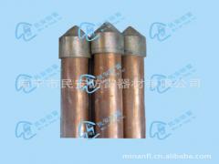 一、产品介绍:MA镀铜接地棒是由纯度99.95%的电解铜分子均匀附着到低碳钢芯上制成的。这种工艺保证了铜层与钢芯之间的永久分子联结。具有良好的导电性能和耐腐蚀性,能有效利用深层的低土壤电阻率降低接地电阻,可保证产品寿命在30年以上。同时抗拉强度高达600N/mm2,适宜深度安装,打入地下不破裂、不脱落。二、产品特点:1、完美的铜分子与钢棒持续结合:由实芯冷抽钢棒,先镀一层镍,再在镍层上镀厚度一致的铜,由于镍与铜及钢均具有良好的粘结性能,从而确保铜层与钢芯的完美结合。2、铜与钢芯完美结合,铜层表面以25倍放大镜检测没有破洞。3、防腐性能优越,表面铜层较厚(平均厚度≥0.254mm),耐腐蚀性强,使用寿命预期超过40年,减轻检修维护的劳动强度与成本。4、电气性能佳,表层紫铜材料优良的导电特性,使其自身电阻值远低于常规材料。5、使用范围广泛,本产品可适应于不同湿度、温度、PH值及电阻率变化条件下的接地建造。6、施工方便快捷,可手工或利用机械施工,微创式作业,大大提高了施工效率。7、强度高,适于深钻地下35米以上,铜层不破裂,不脱落,以满足特殊场合低电阻值要求。8、建造成本低,对比传统上采用的纯铜接地棒、接地带的建造方式,成本大幅度下降。(而且具有的强度,纯铜接地棒无法达到)三、产品相关试验:1、附着试验:以车床切削,由铜镀钢表面往内部切削,使其小于原直径1mm车削到足以暴露铜层与通棒,外包铜层没有剥离现象。2、弯曲试验:取样品长度为铜镀钢直径的40倍,以老虎钳夹紧使其弯曲30°,铜层无剥落,无皱纹。3、拉力试验:铜镀钢棒的抗拉强度高达600N/mm2。