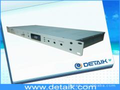 全频道捷变式邻频电视调制器一、概述:全频道捷变式邻频电视调制器,采用高可靠性残留边带滤波器,中频调制信号处理方式,其寄生输出抑制度大于60dB;四重PLL频率锁定,性能稳定可靠;射频放大采用优质模块组件,非线性失真小,确保高输出电平;微电脑CPU控制,可编程101个频道,两位LED显示真实频道,带增补(PAL-D/K制)频道指示,且有断电记忆功能;射频输出电平高达115dBμV(M),有极好的音频及视频线性度;后面板上备有复合中频输入、输出接口,适用于加、解扰系统。二、技术参数:输出频率范围 | MHz | 48—871(PAL-D/K DS01—DS58,Z01—Z43)连续可调(PAL-B/G E02—E63,S01—S41) | 射频输出电平 | dBµV | 115(M); | 寄生输出抑制比 | dB | ≥60(射频输出最大时) | 射频输出端反射损耗 | dB | ≥13 | 视频调制度 | % | 87.5(视频输入电平1Vp-p) | 视频带内平坦度 | dB | ±1.2 | 微分增益 | % | ≤3 | 微分相位 | ° | ≤3 | 视频信噪比 | dB | ≥60 | 色/亮时延差Δt | ns | |Δτ|≤45 | 图像/伴音载波功率比(V/A) | dB | 10—20连续可调 | 图像、伴音频率间距 | KHz | 6500±2(PAL-D/K); 5500±2(PAL-B/G) | 图像载频准确度Δf | KHz | ≤5(VHF); ≤10(UHF) | 中频输出频率 | MHz | 38(PAL-D/K); 38.9(PAL-B/G) | 中频输出电平 | dBµV | 95(±2dBuV) | 音频载波调制频偏 | KHz | 50 | 音频总谐波失真 | % | ≤1 | 音频信噪比 | dB | ≥60 | 音频预加重 | µs | 50 | 电源供电 | V | AC 220±10% | 环境温度 | ℃ | 5—50 | 相对湿度 | % | ≤85 | 工作环境大气压 | Kpa | 86—106 | 外型尺寸 | mm | 483*220*45 | 重量 | Kg | 2.3 | 三、前面板A1电源指示灯。 A2输出监测口。 A3射频输出电平调节。A4数码管显示。 A5频道递增键。 A6频道递减键。A7音频调制度调节。 A8图像/伴音载波功率比调节。 A9视频调制度调节。四、后面板B1视频输入端。 B2 B3音频输入端。 B4中频输出端。 B5中频输入端。B6射频输出端。 B7三芯电源输入线。 B8电源输出互连插座。五、使用和维护★安全及注意事项:◆不得在高温高湿条件下使用,不得用液体清洗本设备◆本设备采用三芯电源线,用户不得去掉接地端。与使用的有线电视系统必须要有良好的接地◆本设备插上电源即可工作,不用时请拔去电源插头,关机后再次开机间隔时间应大于5秒◆本设备在连接音频、视频输入电缆及射频输出电缆时应先断电◆本设备出厂时射频输出电平调整为115dBμV(M),当连接其它设备时应注意其输出电平的大小是否合理。注意,电平过高会造非线性失真而产生干扰◆当发生故障时,用户应着重检查音、视频及射频连接电缆;V/A调整是否合适;射频电平是否正常;外接电压是否正常◆若故障严重请交代理商处理★ 安装与调试:◆在前面板有四个固定螺钉孔,可方便安装在19英寸机柜上◆相邻设备间要留有一定的空间(≥45mm),以利于散热◆要在断电的情况下进行音、视频及射频电缆线的连接,并注意音、视频信号电平的大小◆射频输出端用75Ω电缆与有线电视设备相连,注意本设备输出电平是否合理,可在前面板上射频电平输出孔调整电平◆本设备前面板有监测口(T.P.),用于监测本设备的工作情况◆用前面板上▲键设置所需频道,数码管显示的数字与频道的对应关系请见附表◆调整A/V比,出厂时调整为18Db |
