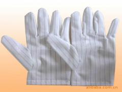 防静电条纹手套是由聚脂纤维和碳纤维组成,能很好的防止有害污染物,而且能在一秒内快速地将静电释放,一般穿在里面,外面加穿乳胶或丁睛手套,穿在外面可用在千级的无尘室.防静电点塑手套手背部分材料由聚脂纤维和导电纤维组成,导电纤维间距 为10mm,手掌部分在基材表面(棉或涤纶无尘布)进行PVC点状处理。手套具有很好的 防静电性能,避免人体产生的静电对产品造成破坏,有很好的弹性,具备防汗和防滑性 能,穿戴舒适方便。 * 很好的弹性,戴着舒适 * 很好的防静电性能 * 很好的吸汗性 * 极好的防滑效果 * 适用于线路板、半导体和其他电子器件的制造流程