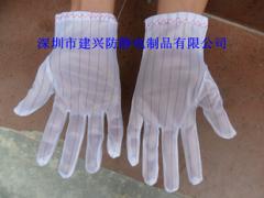 防静电手套基本特性:是采用特种防静电绦纶布制作,基材由绦纶和导电纤维组成,导电 纤维间距为4mm,手套具有极好的弹性和防静电性能,避免人体产生的静电对产品造成破坏,它适合在电子行业、半导体、无尘车间及日常生活中广泛使用。用于需用手套操作的防静电、净化无尘车间环境。穿戴防静电手套可避免操作人员手指直接接触静电敏感元器件,并能安全泄放操作人员所带的人体静电荷。它是半导体工业,光电工业,半导体制造业、电子显象管制造业、电脑主板生产企业、手机生产厂等工作人员工作时必需穿戴的。主要用于需用手套操作的防静电环境如电子、仪表等行业,能防止由于静电所造成的电子元器件损毁、老化;在石化行业能防止由于静电所引起的燃烧、爆炸等危险表面电阻 106-108 Ω ;静电衰减时间 <0.1sec带电电荷量 <0.3 μ C/pair洗涤次数:A级>100次;B级>50尺 寸 S.M.L包 装 10 双/包.100 包/件