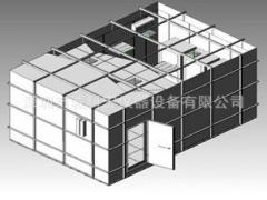 设备主要技术参数:屏蔽机房的屏蔽性能以屏蔽效能S=E0/E1或 S=H0/H1S——屏蔽效能E0(H0)——没有屏蔽体时空间某点的电场强度(磁场强度)E1(H1)——有屏蔽体时被屏蔽空间在该点的电场强度(磁场强度)位—分贝(dB)进行度量。定义为:SE=20lg E0/E1SH=20lg Ho/H1u 屏蔽材料:δ=1.5mm镀锌冷轧板。表面除油、除锈、干燥、喷漆或喷塑表面处理。国标标准 B级 磁 场:450KHz≥55dB 平面波:50MHz≥75dB微 波:1GHz≥65dB测试方法:按GB/T12190-2006标准。结构形式:JES-2可拆卸式电磁屏蔽机房屏蔽壳体: 屏蔽壳体的内容主要有六面屏蔽材料制成单元模块、M8镀锌螺栓、螺母,垫片及导电衬组装而成。工艺特点:a.钢板不平度:每个面的任何部位不平度≤5mm/2m²,侧面墙对角线≤8mm;b.钢墙垂直度误差≤8mm;c.屏蔽壳体抗震指标≥8级; e.地面整体进行防潮防湿处理;手动屏蔽门:屏蔽门是屏蔽机房的关键设备,是工作人员及设备进出的主要通道,在确保屏蔽效能的同时,它的可靠性、实用性及开启方便将至关重要。特点:省力、开启灵活、维修方便、技术成熟。最大的优点:使用寿命长、几乎无需专业维护。标准屏蔽手动门规格型号: 内净为1900mm×850mm 送风系统、排风系统:排风扇外形供参考。滤波器: 滤波器是一种无源双向网络,是由无源元件构成多端网络,它的一端是“源”,另一端是“负载”。它不仅能衰减沿电源线传导的EMI能量,同时也对EMI的辐射有显著的抑制作用。 滤波器采用高插入损耗滤波器、漏电小于2A、性能可靠、稳定。滤波器配置如下: 220V 63A电源滤波器FNF201B63 220V 30A 电源滤波器FNF201B30 空调信号滤波器SNF205D1000 空调三管波导管(气、液、滴水管)屏蔽处理用途:设备、空调、照明、辅助用电电源接入屏蔽机房屏蔽处理。测试接地屏蔽滤波器:配置铜带、绝缘子、固定件、配线等。屏蔽机房室内装修:顶面:轻钢龙骨+微孔铝板+收边条(600*600)墙面:轻钢龙骨+纸面石膏板+双面铝塑板+黑玻璃胶嵌缝地面:无边全钢抗静电地板+地板支架+踢脚线 (600*600*35) 地面全钢地板承重300KG/O以上,不会出现下陷等问题。设备执行标准:1《电子计算机机房设计规范》(GB50174-2008)2《电子计算机机房工程施工及验收规范》(SJ/T30003-93)3《建筑设计防火规范》(GB5004-95)4《建筑内部装修设计防火规范》(GB50222-95)5《低压配电设计规范》(GBJ50054-95)6《供配电系统设计规范》(GB50052-92)7《电气装置安装工程施工及验收规范》(GBJ32-82)8《民用建筑电气设计规范》(JGJ/T16-92)9《防静电活动地板通用规范》(SJ/T10796-2001)10《高性能屏蔽机房屏蔽效能的测量方法》(GB12190-90)11《电磁屏蔽机房工程施工及验收规范》(SJ31470-2002)12《涉及国家机密的计算机信息系统安全技术要求》(BMZ1-2000)售后服务: 自设备移交之日起,提供壹年的免费保修,逾期酌情收费,实行不定期巡检,终身服务。设备发生故障时,在4小时内反应,无特殊情况在48小时予以解决。方式:7×24小时的客户服务热线电话、专门设备的服务邮箱