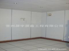 测试方法按GB12190-2006标准三、结构组成:1、壳体:有六面板体、加强龙骨及壳体与地面的绝缘处理,其中顶、墙板采用厚度为2mm的冷轧钢板,地板采用厚度为3mm的冷轧钢板。焊接工艺为CO2保护焊。2、屏蔽门:按用户使用要求可配置不同的屏蔽门,如电动(手动)锁紧屏蔽门、手动锁紧屏蔽门、气动屏蔽门、全自动屏蔽门等。规格尺寸可定做(特殊可做双开屏蔽门)。3、通风波导窗:蜂窝型通风波导窗,尺寸为300×300mm。考虑到与中央空调或新风等系统相连,可按屏蔽室规格配置各种非标尺寸规格的波导窗。4、高性能低泄漏电源滤波器:可处理220v/380v、50Hz的多种规格的电源线,供屏蔽室内设备使用;另外可提供各种非标电源滤波器以处理特种电源(如110V/36V,400Hz等)。5、室内电气:室内配置配电箱,嵌入式日光灯块照明(测试房只能用白炽灯,具体数量根据功能不同对应照度计算而定),电缆走线,控制开关和插座(壁插或地插或插座箱,数量根据用户需要定)。6、室内装修:按用户要求分别对顶、墙、地进行装饰处理。7、其它:根据用户要求可在屏蔽室内安装空调,并进行信号处理;另外所有进出机房的线缆均需经过屏蔽处理(如电话、消防、监控、光纤、各种数据线)。四、产品规格:根据用户要求任意大小定制。