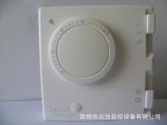 江森自控已隆重推出新一代机械式单冷温控器,型号T125AAC-JSO、T125EAC-JSO两款。安装方便,主要接线为:七线连接。H 风机高速控制 (红色RED) M 风机中速控制 (橙色ORG) L 风机低速控制(YELL)VO 接电动执行器(VA-7070-8503-C,阀门开、白色WHITE) VC 关阀(BLK)L 接电源AC220V 火线(棕色) N 零线(BLUE)