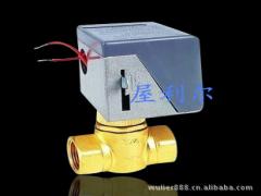 安装维修注意事项: 1) 马达罩壳应防止滴水渗入。当阀装于水平管道时,安装位置与平面夹角不超过85°。当阀门装在垂直管道上时,马达罩壳必须防止滴水渗入。2)拨动手动操作杆时应缓慢移动,当手动杆沿箭头指向慢慢移动并按进缺口内卡住,阀门处于常开状态,每当电流首次通过电动阀时,手动杆会再设定至自动位置。3)安装时绝不能对驱动器施力,否则会损坏驱动器。4)卸下阀体安装时绝对不能对阀杆施力,否则阀杆会损坏导致漏水。5)若阀门在泄漏,应将流体排尽或将其从系统中隔离,检查是否需要更换阀芯组件。6)若驱动器不工作,应更换整个驱动器。利尔K-100系列电动二通阀应用于控制中央空调风机盘管冷水/热水的通断,驱动器由单向磁滞同步电机驱动,阀门弹簧复位。阀门不工作时处于常闭状态,当需要工作时由温控器提供一个开启信号,使电动阀接通交流电源而动作,开启阀门,冷冻水或热水进入风机盘管,为房间提供冷气或暖气当室温达到温控器设定值时,温控器令电动阀断电,复位弹簧使阀门关闭,从而截断进入风机盘管的水流。通过阀门关闭和开启,使室温始终保持在温控器设定的温度范围内。此款电动阀可与温控器配套使用,并能在隐蔽式风机盘管装置内常出现的高温环境可靠工作。该系列电动阀之驱动器与阀体采用螺套联接方式,可以在阀门安装之后,再安装驱动器,现场装配,接线灵活、方便。驱动器之平面设计可以贴近墙面安装,占用空间小。产品可靠耐用,工作噪音低。产品特点: ● 阀体材料:锻造黄铜● 阀杆材料:不锈钢● 密封材料:丁晴橡胶(NBR)● 驱动器底盘:压铸铝合金● 驱动器盖:阻燃ABS工程塑料● 电机功率:7W选型应用: