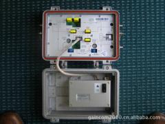 概述GA8630D 860MHz双向放大器 是适应 HFC 网络光节点不断向小型化发展而推出的一种新型放大器,非常适合应用于楼栋放大,低功耗设计使外观尺寸大大缩小,既节约用电,也方便安装,独特的双电源式设计可以满足系统高可靠的需要,能满足 HFC 网络双向传输、广播电视、电话以及数据传输等方面的最新要求。特点l带宽 870MHz (正向 52-870MHz 或 87-870MHz ;反向 5-40MHz 或 5-65MHz )l衰减器和均衡器连续可调。l每一输入、输出均有避雷保护。l两口输出电平可选(分支或分配)l双电源式设计可以满足系统高可靠的需要 。l10A交流通过能力, 60V 或本地 220V 供电可选。