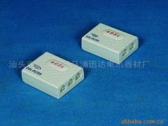 汕头市潮南区司马浦迅达电讯器材厂是一家集开发、生产、销售为一体的企业。主要产品有手机充电器、手机万能充电器、手机车载充电器、电源适配器、点烟头母座连接器、MP3/MP4充电器、电源插头插脚、电话检测仪器、电话分机保密器、电话防盗器、ADSL语音分离器、电话/电脑防雷器、电话助响铃、可调式电话铃、水晶头、电话分线器、电话接线盒、面板/墙扳、电话直线、电话机连接曲线、电话线粒、电话周边配件、零件及连接插件,电脑周边配件,网络配件等系列。自1993年成立以来,“源群”“YUANQUN”“XD迅达”“源太尔”“YUANTAIER”品牌已遍布全国三十多个省市、自治区;深受消费者的青睐。本厂拥有专业技术人才、专业厂房,产品开发部,注塑车间,生产装配线,并配备有领先于国内水平的检验设备。我厂具备有新产品的模具设计、开模、注塑、成品的组装,检验,销售,一条龙运作;能快速、准确地满足客户的要求。我们有信心有能力的坚持以市场为导向,品质为基础,求实创新,精益求精,争做行业先锋,力创知名品牌,以满足国内外不同层次客户的要求。竭诚欢迎海内外新老客户指导、合作,迅达全体员工将一如既往地坚持以一流的服务待客户、以合理的价格寻市场、以质量取胜,真诚与社会各界携手并进,开拓市场,共创辉煌本产品采用UL1950标准,适用于网络快车ADSL用户端,可将电话低频话音信号和计算机高频数据信号滤波分离,使在同一线路传输时互不干扰。并能解决因部份电活机静态高频信号损耗引起的ADSL上、下行速率下降及经常断电等问题。并具有通讯线路感应雷击和过压冲击电流的保护功能,其检测标准按YD/T993《电信终端设备防雷技术要求和试验方法》执行生产。本产品安装方便,无需外接电源,是电话通讯网络信号最佳ADSL电话语言分离器。