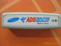 ADSL语音分离器(ADSL SPLITER)是用来将电话线路中的高频数字信号和低频话音信号分离.低频话音信号由分离器接电话机用来传输普通话音信息;高频数字信号则接入ADSL Modem,用来传输上网信息和VOD视频点播节目.这样,您在使用电话时,就不会因为高频信号的干扰而影响您的话音质量,也不会因为在上网时,打电话由于话音信号的串入影响上网的速度.安装时先将来自电信局端的电话线接入话音分离器的输入端(LINE),然后再用电话线一头连接话音分离器的话音信号输出口(PHONE),另一端连接您的电话机.此时您的电话机应该已经能够接听和拨打电话了.如果上网,将电话线一头连接话音分离器的数据信号输出口(MODEM),另一端连接您的调制解调器(ADSL Modem).本产品内含两个变压器,“双重”防雷,上网更稳定,语音更清晰,更有效地保护了您的电话和Modem的安全.HL-2008B(ADSL语音分离器)技术参数一:变压器参数变压器型号:EP-13电气性能:@25摄氏度初级电感LP:4.30mH~4.50mH,初次级电感量之差≤0.08mH (10kHz/0.1v)DCR Pri(欧姆):≤4.2欧姆DCR Sec(欧姆):≤4.2欧姆圈数比:N1 : N2=178T : 178T±1%耐压:1500Vrms二:分离器参数成品尺寸(单位: mm) :长度=82mm (长条型)电气性能:@25摄氏度交流阻抗:≥14dB300~500Hz≥18dB500~2000Hz≥14dB2000~3400Hz音频插入损耗:≤0.3dB1020Hz群时延:≤150us500~2800Hz众向平衡:≥58dB200~1000Hz≥53dB3000HzADSL频带衰减:≥65dB30~300KHz≥55dB300~1104KHz损耗频率失真:300-3400Hz频带上任何频率点相对1020Hz的损耗≤±0.3dB直流电阻:≥25欧姆直流电流:100mA