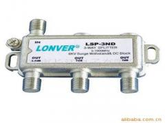 【价格,图片,产品属性,仅供参考,不作交易价格,具体以实物为准,欢迎来电咨询】www.lonver.com三网合一CATV数字有线电视三分配器 3-way SplitterLSP-3分配器产品详情²5-1000MHz带宽,优越的射频性能,适用于有线电视及综合数字信息网络。²符合美国有线电视通信工程师协会(SCTE)标准(优于国标),适用于所有地区。²损耗小,失真小,信号保真度高。²锌合金一体化密封外壳,防水防潮。²圆柱形内导体,接触良好性能稳定,插拔力大于50克。²射频屏蔽大于120dB。²6KV浪涌保护。²包括基本型和端口直流隔离型。www.lonver.comØ正确的接头和电缆连接方法注意:确保屏蔽编织网线与铝箔完整。确保屏蔽网线和铝箔不与中心铜线短路。确保屏蔽编织网线与接头螺纹紧密结合。有线电视分支器与分配器的区别1、分配器的端口标识为:IN、OUT、OUT这是一分二的分配器2、分支器的端口标识为:IN、OUT、TAP、TAP这是一分二的分支器3、分配器 出来的信号都一样的 比如说306分配器 就是说有一个进口(IN)三个出口(OUT) 每个出口衰减的DB数是6DB。4、分支器可以连级接,而分配器则不能连级接,因为分配器连级接衰减大。放大器后接一个分配器到电视,两个以上才能到电视的,中间请用分支器。5、分支器与分配器最大的区别就在于输出到电视的输出口不同,分支器输出到电视的是BR输出口,而分配器是OUT输出口。6、分配器 对信号进行同等的分配,在有线电视经常用到,2 3 4 6 8分配器或更大。7、分支器 从主路上取出少部分信号送到分支口的功率电平分配器件称为分支器。8、分支器不一样,比如说410分支器 是一个进口(IN) 5个出口 其中只有一个(OUT)口 其余4个是BR(分支)口 BR口衰减是 10DB OUT口衰减是2DB 也就是我们常说的插入损耗。在安装时,分配器的每个输出口子,绝对不可以空载,否则会由于阻抗不匹配的原因造成重影,一般都要求加上阻抗匹配器。而对于某几级的分支器的分支输出口,则关系不大。9、分支/配器 区别: 分支器输出、输入的电平不相等, 分配器输出、输入的电平完全相等。10、分支器的OUT输出口是输出给下路需要接分支分配器用的输出口,因为分支器的OUT输出口的衰减很小,所以作为干路的分支设备,使后面串联线路中的电视信号衰减减小,配合干路放大器使整个线路中的信号均衡。分支器是在一个主输出信号顺利通过的情况下,能分出一部分低于主输出信号电平的一个或几个相等信号的电子电路,它也具有很好的隔离性,只要在主输出口接有标准阻抗的同轴电缆或终端匹配电阻,分支口开路或短路对输入口的网络的影响不大,有线电视网络运用这个特性来连接用户终端主输入口。 分支器:从主路上取出少部分信号送到分支口的功率电平分配器件称为分支器。主路的输出/输入口分别用OUT和IN表示,支路的分支口用BR表示。 分配器 输入信号等分到输出口的功率电平分配器件称为分配器。输出/输入口分别用OUT和IN表示。 一分支器 二分配器 二分支器 三分配器 三分支器 四分配器 四分支器 八分配器