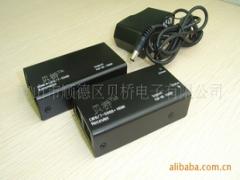 HDMI延长器(By CAT-5e/6网线)HDMI双绞线延长器使用两根CAT-5e线可以将你的HDTV显示器延长30M。它不仅突破了HDMI Cable的传输极限,重要的是CAT-5e在接线施工时具有更多的灵活性和便利性。它配有HDMI(高清晰多媒体界面)连接端口,配合使用HDMI到DVI转换头使用时,支持DVI(交互式数字视频系统)设备。当整合单独的家庭影院时有更多的灵活性和组成选择。HDMI双绞线超级延长器Sender(发射单元)放置在电脑、机顶盒或DVD播放器的旁边。使用超级延长器标配的电缆将DVI或HDMI信号源和发射单元连接起来。HDMI CAT-5延长器Receiver(接收单元)放置在高清的显示器旁边,将显示器插进延长器的接收单元后面。两根CAT-5电缆将发射单元和接收单元连接起来。延长器给众多消费者提供了便利,多应用在高清电视展销处,高清电视,机顶盒,DVD等投影设备的工厂,数据监控中心,大型会议展示中心,学校及各个公司。优点:一旦HDMI电缆成型之后,它的长度是固定的,不可改变的。因为HDMI电缆的接头处是经过专业手段焊接固定的,使用者不可以缩短或者拉长距离。然而,CAT-5e/6电缆普遍,易安装。因为HDMI电缆的接头很大,所以使用起来必须以隐藏的方式。并且,在墙内通道传输时,HDMI电缆不易于弯曲,然而CAT-5e/6电缆没有这样的麻烦。使用此延长器,传输距离可以高达至50米,480p,对于其他普通的HDMI电缆,当传输距离高达10米以上,就需要特殊定制。此款HDMI双绞线延长器具有以下各个特性:一对作为完整的组件,安装简单,方便便捷,外观精致。CAT-5e/6电缆能够代替HDMI电缆的传输,达到更长距离的传输。符合标准规范IEEE-568B.当使用CAT-6的电缆传输时,传输距离可以高达50米1080p。信号高至1.65Gbps,支持1080P显示器。兼容HDCP1.视频放大器带宽:2.5 Gbps2.输入视频信号电平:1.2 volts p-p3.输入DDC信号电平:5 volts p-p (TTL)4.输出接口:RJ45CAT-5e/6电缆5.HDMI接头:A类 19针 母头6.视频输出:HDMI 19针 母头(纯数字)7.电源:5V DC8.功耗:5 watts (最大)9.毛重:0.6(净重0.25KG)10. 机身尺寸:80*44*20MM,