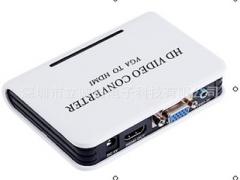 主要运用于电脑PC、电脑笔记本、DVD、游戏机等带有VGA输出接口的视频产品。 可以将带有VGA接口的设备链接到大屏幕电视机、投影机等高清显示设备上;更加体验大屏电视或投影看电的效果。 该转换器对信号只做格式变换,不对输入信号进行缩小、放大等技术处理,最高支持1080P或1920X1080,输入与输出一致。支持所有VGA标准输出分辨率。1路VGA+1路音频=1路HDMI1. 视频输入接口——VGAVGA输入格式:640*480@60Hz、 800*600@60Hz、 1024*768@60Hz、1280*720@60Hz、1280*768@60Hz、1280*800@60Hz、1280*1024@60Hz、1360*768@60Hz、 1600*1200@60Hz、1920*1080@60Hz2. 音频输入接口——3.5mm模拟音频输入3. 视频输出接口——HDMIHDMI输出格式:720P,1080I,1080PHDMI版本— 1080P/1.3采用模数转换芯片,可以将高清晰高分辨率的VGA视频信号转换成为高速的数字信号,且无任何损失;后端的HDMI编码器采用了全球最顶尖的HDMI芯片设计公司siliconimage的编码器,可以将前端送来的高速数字信号编码成高清晰的HDMI信号输出,最高支持1080P/1.3版。二.附件说明: