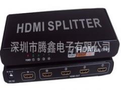 产品介绍:1.3版本1 IN4 OUT HDMI分配器,该分配器可以将一路输入的HDMI信号同步输出四路一致的HDMI信号;由于该分配器具有信号缓冲、放大的功能,能实现超过15米的远距离传输;并可通过堆叠方法,可以增加HDMI输出端口的数量.该系列产品分为MINI型1分2、MINI型1分4、1分8等,同时该产品可进行3级级联.特点:1.为高清数字电视机生产工厂测试,老化房等工业用途及大型商场电视机销售展示量身打造;2.性能稳定,输出速度快,完全适用于高要求的测试环境;功能特性:1.支持国际标准HDCP内容保护1.2版本;2.支持HDMI 1.2版本支持1.3版本;3.工作温度范围:-15 to +55℃4.工作湿度范围:5 to 90%RH(无冻结)5.支持视频输入格式:VGA:1920*1280/1280*1024/1024*768/800*600/640*480 HDTV/DTV:1250P/1080P/1080I/720P/576P/576I/480P/480I6.支持视频颜色格式:彩色深度 24位/36位色深度7.支持音频格式:LPCM,DOLBY-AC3,DTS7.1,DSD8.输入视频信号:5.0Volts P-P9.传输距离:≤15M(如果需要传输更长距离,需要连接延长器)10.数据传输速度:10.2G11.最大工作电流:1000mA12.电源适配器格式:输入: AC(50HZ 60HZ)100V-240V;输出:DC5V可为以下应用场合提供解决方案:HDTV、数字机顶盒、DVD、投影机的零售、展示场所及生产工厂的测试环境;数据中心控制、信息分配、会议室演示、教学环境和培训场所以及对噪音、传输距离、安全有限制要求的场所.分配器连接图示: