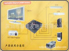产品名称:HDMI切换器(3路输入,1路输出)产品编码:ljy-H602产品体积:49mm*50mm*13mm产品产地:深圳产品规格:HDMI 1.3b 1080P使用机型:可用于HD-DVD,PS3,STB,电脑,高清播放机等.操作方式:手动按钮切换或者(遥控切换=外加)产品配件:S-HD301包装方式:纸盒此产品主要优点1.兼容性能好,支持1080P,适用于带HDMI接口的DVD,STB,PS3,PC,DV,DLP Video Projector及其他HDMI设备。2.省电式设计,无需外接电源3.体积小(49mm*50mm*13mm),不占地方4.状态指示灯,实时了解各端口动向。三路HDMI输入,一路HDMI输出3进1出迷你型HDMI切换器,该切换器内置了强大的自动识别切换功能。基于HDMI产品的丰富设计经验,这款切换器是目前行业内兼容性最好的产品。由于免除了外置电源和遥控器,这款切换器是目前市场上使用最简便,性价比最高的3*1 HDMI切换器。MINI型切换器(选择器)是三路一致的HDMI信号,一路HDMI输出信号,该切换器(选择器)的三路输入可连接三台不同的高清数字信号源,并可通过手动切换按键或遥控器在三台不同的高清数字信号源之间选择切换,该切换器是智能型,用户选择使用或不使用遥控器、电源适配器均能正常工作,非常方便实用。特点:1.样式小巧玲珑,方便运输及携带;2.智能型设计,无需特别设置,即插即用;3.用户可选择使用或不使用电源适配器:电源适配器是为了方便用户在供电很弱的环境下使用,如能正常供电无需使用电源适配器;4.不使用遥控器:与信号源正常连接后,SW070301(MINI)会自动切换,其相对应的LED灯会亮,当它切换到LED灯亮相对应的信号源为正在工作特性功能:1.支持国际标准HDCP内容保护1.2版本;2.支持HDMI 1.3版本3.工作温度范围:-15 to +55℃4.工作湿度范围:5 to 90%RH(无冻结)5.支持视频输入格式:VGA:1920*1280/1280*1024/1024*768/800*600/640*480 HDTV/DTV:1080P/1080I/720P/576P/576I/480P/480I6.支持视频颜色格式:彩色深度 24位/36位色深度7.支持音频格式:LPCM,DOLBY-AC3,DTS7.1,DSD8.输入视频信号:5.0Volts P-P9.传输距离:≤15M(如果需要传输更长距离,需要连接延长器)