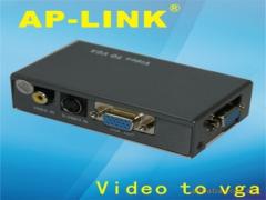 AV转VGA转换器品牌:AP-LINK产地:深圳特点用途:1、用显示器看电视节目;2、将家里原数字电视机顶盒、卫星电视接收机、DVD等视频输出设备接到电脑上观看;3、将监控摄像头、画面分割器等BNC输出设备连接到你的电脑显示器,代替了昂贵的监视器。-1路视频输入-1路S端子输入-1路VGA信号输入-1路VGA信号输出-DC-5V外置电源-视频信号格式转换-将CVBS、S-VIDEO信号转换为倍频处理的高分辨率的VGA信号-支持多种输入信号格式-CVBS、S-VIDEO、VGA,支持PAL/NTSC两种彩色制式自动识别-支持输出分辨率-800×600@60HZ,800×600@75HZ,1024×768@60HZ-自适应PAL/NTSC制式-亮度、对比度、色饱和度、色调调节-图像冻结功能-断电自动保存当前工作状态-操作状态字幕提示功能-可选功能-遥控操作功能