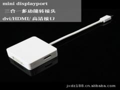 苹果MINI Displayport TO DVI/HDMI/VGA高清转换器Mini DisplayPort公头=> DVI/VGA/HDMI (24+5)母头*支持DisplayPort信号到DVI/VGA/HDMI头*支持DVI最高分辨率:1920x1080P*支持DVI 225mHZ/2.25Gbps per channel/6.75Gbps all Channel带宽.*信号从Mini Displayport端输入DVI/VGA/HDMI*支持单向、单通道、四线连接*支持Mini DisplayPort 1.1a input and HDMI1.3b output*支持HDMI highest video resolution 1080p.*支持HDMI 225MHz/2.25Gbps per channel (6.75Gbps all channel) bandwidth*支持HDMI 12bit per channel (36bit all channel) deep color*支持uncompressed audio such asLPCM.*支持Displayport最高1920X 1200.HDMI接口支持音频,只要您的电脑(MacBook pro MC371 MC372 MC372 MC373 MC374 MC375 MC024 MC516等)支持音频,就可以直接将声音转送到您的电视机!目前大多同类产品都不支持音频,因为苹果电脑只有最新的几款才有音频输出,之前的电脑都没有音频输出。特别提示:老款苹果笔记本因为机器本身不能转送音频,即不带声音输出。支持型号:iMac Intel 17" /iMac Intel 20" /iMac Intel 24" Mac mini Early 2009 /MacBook 13 Unibody Late 2008 /MacBook Air /MacBook Pro 13 Unibody Mid 2009 /MacBook Pro 15 Unibody Late 2008 /MacBook Pro 15 Unibody Mid 2009 /MacBook Pro 17 Unibody Early 2009 /MacBook Pro 17 Unibody Mid 2009产品功能说明: Mini Displayport 视讯介面的MacBook MacBook Pro,以及MacBook Air 主机连上一般的标准类比式显示器,投影机或是个备VGA,HDMI,DVI接头或信号线的LCD液晶显示器, 新款MacBook MacBook Por, 以及 MacBook Air 均具备了mini Displayport 介面,让您可以转换器外接显示器或投影机,你可以使用外接显示器人选为主要工作空间,或是作为电脑桌面延伸,此外,也可以在连接投影机时使用镜像模式,各观从看见相同的画面。 仅适用于具有mini Displayport 视讯介面的 MacBook MacBook Pro,以及MacBook Air系统