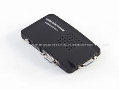 AV转VGA视频转换器AV To VGA转换器是一个将模拟视频信号转换。可广泛应用于教学监控等领域。VGA显示分辨率高达1280X1024 (60Hz)。可广泛应用于教学监控等领域。另:有线电视信号需通过数字机顶盒输出.其它均可使用,敬请买家留意.另外,我们测试的是监控器和电视机.-1路视频输入-1路S端子输入-1路VGA信号输入-1路VGA信号输出-DC-5V外置电源-视频信号格式转换-将CVBS、S-VIDEO信号转换为倍频处理的高分辨率的VGA信号-支持多种输入信号格式-CVBS、S-VIDEO、VGA,支持PAL/NTSC两种彩色制式自动识别-支持输出分辨率-800×600@60HZ,800×600@75HZ,1024×768@60HZ-自适应PAL/NTSC制式-亮度、对比度、色饱和度、色调调节-图像冻结功能-断电自动保存当前工作状态-操作状态字幕提示转换器的按钮说明:P.P键 ----- 图像模式MENU键 ----- 菜单 (含子菜单,可中英文选择)MODE键 ----- 分辨率调整PIP键 ----- PC解析度STLL键 ----- 暂停AV/SV/VGA键--- 输入信号切换