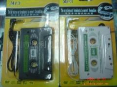 汽车磁带转换器-功能简介: 1) 将“磁带转换器”按照正常磁带放置方法放入您爱车的录音机(卡式机) 2) 将“磁带转换器”上连着的音频线插到CD,MP3,MD,DVD,VCD等设备的音频输出口,然后 播放CD,MP3 或MD,将汽车录音机的音量调整适当,这样你就可以在自己的爱车内享受CD,MP3或MD播放的美妙歌曲! 此款磁带转换器使用本公司自己生产的高档双道;四道 立体声磁头,音频输出纯正,播放效果极佳.可来样定做!.欢迎国内外零售商和批发商洽谈合作!