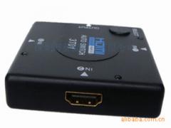 HDMI切换器,3选1产品名称:3进1出HDMI切换器(3路输入,1路输出切换使用)产品体积:60mm*60mm*15mm产品产地:深圳产品规格:HDMI 1.3b 1080P 3D使用机型:可用于HD-DVD,PS3,STB,电脑,高清播放机等.操作方式:智能全自动切换/手动切换产品配件:HDMI-LW3X1切换器*1 吸塑包装*1此产品主要优点1.智能自动切换。3个input口,单个input口有信号时,自动选择该通道。两个或两个以上input口有信号时,默认顺序为input1-input2-input3,可以手动按Select按键选择其中一个。2.兼容性能好,支持1080P,适用于带HDMI接口的DVD,STB,PS3,PC,DV,DLP Video Projector及其他HDMI设备。3.省电式设计,无需外接电源4.体积小(60mm*60mm*15mm),不占地方5.状态指示灯,实时了解各端口动向。指示灯亮的input口,为当前选择的HDMI输入口。三路HDMI输入,一路HDMI输出3进1出迷你型HDMI切换器,该切换器内置了强大的自动识别切换功能。基于HDMI产品的丰富设计经验,这款切换器是目前行业内兼容性最好的产品,行内首个智能全自动切换的,不需要人工切换。由于免除了外置电源和遥控器,这款切换器是目前市场上使用最简便,性价比最高的3*1 HDMI切换器。联系人:庞小姐电话:13620205772QQ:17444256MSN:big_earth@163.comEmail:big_earth@163.com