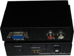 VGA TO HDMI 转换器输入,输出支持1080P专业厂家生产,出口品质Features-Input: 1 XVGA, Audio L/R;-Output: 1 X HDMI,-HDMI 1.2 and HDCP compliant;-Input output video format supportPC:1920 X 1080@60Hz, 1280 X1024 @60Hz, 1280X 720 @60Hz, 1024 X 768 @60Hz, 800X 600 @60Hz, 640 X 480 @60Hz,HDTV:480i/576i/480p/576p/720p/1080i/1080PSpecificationsVideo Amplifier Bandwidth ....................................................................................................165MHzInput Video Signal ................................................................................................................1.2 Vp-pInput DDC Signal ........................................................................ ………….…………….5Vp-p (TTL)SingleLink Range............................................................. ......................................................1080PInput Connector Type ................................................................................. ……………...........VGAOutput Connector Type.........................................................................................................HDMI APower Consumption................................................................................................. ..5Watts (Max.)Power Supply ..........................................................................................................................5VDCDimensions ...........................................................................................................................80X70X30mm