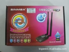Best quality + Superior customer service + Lowest price=100% customer satisfactionWholesale - FREE WIFI 11N KINAMAX WIFI ADAPTER High Power Wireless WIFI USB adapter,high power wifi lan cardYOU CAN CONNECT TO ANY FREE WIFI FOR YOUR LIFETIME NO NEED TO PAY MONTHLY SUBscriptION2011 new MIMO technologyKinamax 11n wifi adapter(high power) The latest Ralink 2770 chipset .Connect up to 1000m range distance of wifi access pointfree bt 3 software for access wep networkProductCome with : 1x adaptor, 1x 6dbi antenna, 1x driver cdrom ,1x usb wire ,1x BT 3 cd,1x manual bookItem Technical Specification Standards IEEE 802.11n (draft 2.0), IEEE802.11g,IEEE 802.11bInterface Type USB 2.0/1.1 Data Rate 802.11b: 11Mbps 802.11g: 54Mbps 802.11n: TX: 150Mbps RX: 300MbpsSecurity 64/128bit WEP encryption WPA/WPA2 and WPA-PSK/WPA2-PSK encryptions Wi-Fi Protected Setup(WPS)Operating Frequency FCC: 2412-2462 MHz(Ch1-Ch11) ETSI: 2412-2472 MHz(Ch1-Ch13) RF Frequency 2412-2462 MHz(North America) 2412-2472 MHz(Europe) 2412-2484 MHz(Japan)Antenna Type Internal PCB Antenna + 7dBi High gain AntennaLED Status Link Status, Activity OpperableEnvironments Operating Temperature: 0`c ~ 40`c Storage Temperature: -20`c ~ 60`c Operating Humidity: 10% ~ 85% RH non-condensing Storage Humidity: 5% ~ 90% RH non-condensingSupported OS 2000,XP,Vista 7,Linux and MAC OSXIEEE 802.11n up to 300Mbps raw transmission rates- Compatible with IEEE 802.11a/b/g standards- Supports 64, 128, 256-bit WEP, WPA, WPA2 security mode- Supports DSSS/DFDM/MIMO- USB 2.0 connectivity- Detachable antenna- Operation range up to 5600m - manufacture rated- Supports Windows 2000/XP/Vista/7/Linux/Mac OS X- USB cable and 2*drivers CD included- Comes with English user manualNo retail packaging