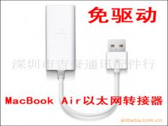 Apple苹果MacBook Air以太网转接线 网线接口 USB网卡 USB以太网转接器Apple USB 以太网转接器是一款简单的一体式外部转接器,可插入MacBook Air 的USB 2.0 端口以提供 10/100BASE-T 性能。只需将以太网线缆插入 RJ-45 接口,不需要外置电源。它小巧轻便且易于安装,甚至还易于使用。Apple USB Ethernet AdapterEasily connect your MacBook Air computer to an Ethernet network with the Apple USB Ethernet Adapter. Small and light, it connects to the USB 2.0 port of your MacBook Air and provides an RJ-45 connector that supports 10/100BASE-T performance1.网站标价均为最低批发价格,不含运费、税收等其它任何费用。2.所有商品均为实价,公司会根据市场变化,实时更新网站价格。3.商品50件起批,可混批。支付宝银行转帐(招行、交行)温馨提示:本网站支持在线下单,定单处理更方便快捷。请直接按照网站提示购买此产品并付款银行付款后请立即联系我们以便第一时间确认您的汇款到帐情况,以免影响及时发货联系人:徐小姐15817491552唐先生: 13554714030QQ:1556312075旺旺: jiyutx