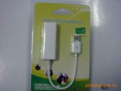 产品特色:1.外形小巧美观,直插式免拆机; 2.支持热拔插,工作状态灯显示;3.产品稳定性好,速度快,质量高,优化电源管理,低耗电量。包材规格:1.外箱尺寸( 200pcs): 57.2 × 38.7 ×36.5 mm2.包装盒尺寸: 12 × 11 ×2.35 mm3.驱动光盘一张 4.装箱单一份 5.单个产品(含包装)重量:43.7G 6.整箱重量:9.2KG1.宽带网用USB接口数据传输,适用于台式电脑及笔记本电脑2.支持热插拔,可随身装置。3.数据传输速度:12MB/秒4.产品有多种色彩外壳,中性英文纸盒吸塑包装5.支持系统:Windows 98SE/ME/2000/XP,Macintosh OS 9.0以上6.产品支持:USB1.1宽带以太网10-100Mbs The USB to 10/100 Fast EthernetAdapter provides plug-and-play 10/100Mbps dualspeed Ethernet connection for PCS, notebooks and laptops .This device complies withUSB Specifications 1.0 and 1.1,and uses a USB type A connector to conneter to theUSB host device drows power from the USB host bus, therefore no externalpower supply is required.7.执行USBV1.1标准,支持全双工和半双工的传输速度为10和100Mbps操作;8.支持全双工的数据流控制(IEEE802.3X)9.产品体积:67.7*21.4*19.6MM