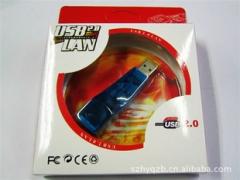 产品特色:经度设计,多种颜色外壳,方便易用,不需要外接电源,适用于台式电脑及笔记本电脑, 支持热插拔,宽带网用USB接口数据传输,低耗电,可随身装置。 数据传输速度:10/100mbs 产品规格:多种色彩,中性中/英文纸盒吸塑包装 操作系统:Windows 98SE/ME/2000/XP,Macintosh OS 9.0以上 产品支持: USB1.1宽带以太网10-100Mbs The USB to 10/100 Fast Ethernet Adapter provides plug-and-play 10/100Mbps dual speed Ethernet connection for PCS, notebooks and laptops .This device complies with USB Specifications 1.0 and 1.1,and uses a USB type A connector to conneter to the USB host device drows power from the USB host bus, therefore no external power supply is required. 执行USBV1.1/2.0标准,支持全双工和半双工的传输速度为10和 100Mbps操作;支持全双工的数据流控制(IEEE802.3X)用LED灯显示网络工作状态。 电源供电:USB 5V600ma