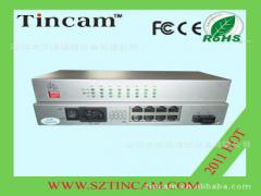 深圳市天博通信设备有限公司生产的光纤交换机:一个光口,多个电口RJ45口;图片仅供参考,具体请电话:0755-33591616转销售部。光纤交换机提供2个10/100M电口,支持端口速率、工作模式、Port VLAN端口带宽控制、优先级、端口安全等智能配置。以太网光纤交换机整体性能优越,使用简单,价格适宜,为工作组用户及智能小区宽带接入提供理想的组网解决方案。关键特性:符合IEEE802.3、IEEE802.3u标准流控方式:全双工采用IEEE802.3x标准,半双工采用Backpressure技术 2个10/100M自适应RJ45端口,支持端口自动翻转(AutoMDI/MDIX)提供1个100M光口,以满足远距离传输的要求。支持2组Port VLAN和MTU VLAN功能,提供端口带宽控制功能,最小粒度为128kbps支持IEEE802.1p优先级协议模式、二级静态端口优先级模式和ToS优先级模式,支持广播风暴控制提供固定IP地址设置支持交换机系统软件的升级,配置文件的保存和恢复采用外置5V1A开关电源供电
