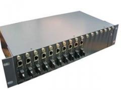 十六槽19机架式光纤收发器(LB-AA/19/16)产品是一种能满足用户集中使用、集中管理的最经济型的标准2U机架。电源实现双自动备份不间断地工作,系统具有过温、过压、过流保护装置。内部采用电压补偿技术,光纤收发模块能够得到可靠的、准确的电压供电。它被作为收发器数量使用不多的用户最佳选择。产品特性※标准机箱,可安装在机房机架中,便于统一管理和维护※采用模块化电源设计,维护方便,屏蔽性更好,防止了电源产生的电磁信号干扰模块组的正常运行.※机架最多可同时插入16个光纤收发模块,每个光收发模块可以不同类型※每个模块可以相互独立地在机架上插拔工作,也可以相互合作工作,为自身提供网络诊断※机架每个槽都支持热插拔功能※电源模块化设计,提供充足备用功率,具有便于维护的插拔功能※完全符合电信级运营要求,平均无故障工作时间5万小时以上※售后服务完备,提供三年的质量保证和终身维修服务■产品技术说明LB-AA-19/16采用先进的电源处理技术和可靠的电源设计,实现了电源模块化;机架提供16个光纤收发模块插槽,每个插槽模块可以独立工作。该机架具有可靠的保护设备功能(保护光纤收发器模块不被外界AC220V浪涌高压击坏);提供可靠的稳压源,具有负载自动平衡功能,即保证无论多少个光纤收发模块接入,提供模块单槽电压均为标准电压,保证了光纤收发模块性能的可靠性和稳定性,为寿命一致性提供了条件。电源采用了双备份设计,符合电信运营级标准。机箱结构采用2U标准设计,可以方便地安装在配线架上。■产品性能参数※主备用电源工作参数工作环境要求输入参数输出参数工作温度0℃-60℃输入功率150W输出功率130W储存温度-40°C -70°C交流电压AC140-260V 50HZ直流电压DC5V纹波:±1%环境湿度5%-90%无冷凝直流电压DC 36~72V直流电压DC5V纹波:±1%※电源使用美国VICOR电源模块,功率大、效率高、散热性能好、不易发热、电磁辐射小、过流,过压,短路保护※输入收发模块的最大功率参数:DC5V/3A(15W)※最大的插板数量:16个模块(平均最大插板功率参数:DC5V/1.5A)※风扇正常工作功率:12V/300mA※电源带过压保护和过流保护,清除故障后,电源具有自动恢复功能※备有二个可插拔的大功率电源模块,它们分别有两个电源模块工作指示灯(绿灯)和故障指示灯(黄灯),正常主电源模块工作亮绿灯,备用电源亮绿灯。※实际功耗:≤60W※环境温度:0℃至50℃※储存温度:-40-70°C※环境湿度:5%至90%※机架尺寸:长×宽×高(482.6mm×290mm×88.8mm)■适用环境※应用于集中智能管理的光纤网※集中管理和集中控制的机房※要求高性能保障的网络安全系统※适用电源波动范围较大的地区※适用电信、有线电视以太网光纤数据集中网络管理订货信息产 品 说 明LB-AA/19/16:十六槽19"机架式机箱(含主用电源、备用电源)货币类型:RMB.USD.产品单价:产品数量: