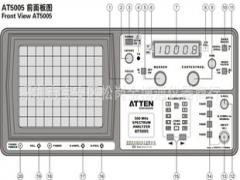 有线电视CATV及通讯机检测安泰信频谱分析仪配合阻抗转换器(50Ω互转75Ω)对有线电视(CATV)及通讯机等有线、无线系统进行检查及信号频率的分析比较。GSM、CDMA手机检修安泰信频谱分析仪可以检测手机射频电路的本振信号,中频信号、发射信号等。用AT5010频谱分析仪检修手机不入网故障点,快捷准确进行故障定位维修。信号侦听功能频谱分析仪输出的FM检波信号,分析出不加密的广播电台的内容,可用来识别噪声施加影响的广播信号,能及时从空中的电台中进行分析,从而判断被检测设备的正常运行及测量第三方某些不可知的电台活动存放为使观察屏幕方便,有三种(C、D、E)仪器角度放置供参考。在搬运后若就地上放置,参阅A;若放在水平地方,参阅C;若10度角放置,参阅D位置,提手应移向下方到自动锁住;若要E方向,则从D位置拉出两边提手再移下去直到再锁住;提手将向B图位置时锁住则可实现水平移动。同时,仪器必须被提起,否则手提会跳回。前面板功能描述1.聚焦,光点锐度调节。2.亮度,光点亮暗调节。3.电源(通ON和断OFF),当电源打到通处,约经10秒钟将有光束出现。4.轨迹旋转,即使有磁性(铍镆合金)屏蔽,地球磁场对水平扫描线的影响仍不可能避免。通过一个内装的电位器可用来调整它,使水平扫描线与水平刻度线基本对齐。5.标记(通ON/断OFF),当标记按钮置于OFF(断)位置时,中心频率(CF)指示器发亮,此时显示器读出的是中心频率。当此开关在ON(通)位置时,标记(MK)指示器发亮,此时显示器读出的是标记的频率,改标记在屏幕上是一个尖峰,标记频率可用标记(MARKER)旋钮来调节,它可以重合到一根谱线上。(注:在进行正确幅度读书前应将标记断掉)6.中心频率/标记(CF/MK),当数字显示读中心频率时,中心频率指示器亮,中心频率时指示波管上水平线的中心处的频率,当标记按钮在通时(ON),标记指示器亮,此时显示器读出标记处的频率。7.数字显示器(中心频率/标记频率之一读出),7段,100KHz分辨率。8.校准失败,此LED闪亮时表示幅度值不正确,这是由于扫频宽度和滤波器的配合、中频滤波器设置不当而造成幅度降低的读出。这种情况可能出现在扫频范围过大,相对于中频带宽(20KHz),或者视频滤波器带宽(4KHz)时,若要正确测量,可以不用视频滤波器或者减小扫频宽度。9.中心频率——粗调/细调,二个旋钮都用于调节中心频率,中心频率是指显示在屏幕水平中心处的频率。10.中频带宽,选择中频带宽在400KHz和20KHz,选在20KHz带宽时,噪声电平降低,选择性提高,能分隔开频率更近的谱线,此时,若扫频宽度过宽时,由于需要更长的扫描时间(做不到)而造成信号过渡过程产生的降低信号幅度而使测量不正确。“不校准”LED发亮就指出了这个条件。11.视频滤波器,视频滤波器可用来降低屏幕上的噪声,它使得正常下在平均噪声电平上或刚好高出它的信号(小信号)的谱线得以观察,该滤波器带宽时4KHz。12.Y位移,调节射速垂直方向移动。13.输入,频谱仪的BNC50Ω输入,在不用输入衰减时,不允许超出的最大允许输入电压为±25VDC和+10dBmAC。当加上40dB最大输入衰减时,最大输入电压为+20dBm。14.衰减器,输入衰减器包括有4个10dB衰减器,在进入第1混频器之前降低信号幅度,按键压下时,每个衰减器接入,衰减器选择、参考电平、基线电平(噪声电平)三者的配合有如下所列: