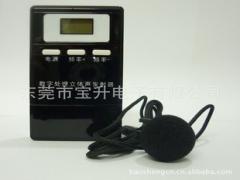 BS-830调频立体声发射机一、功能特点调频立体声发射机1.液晶数字显示功能2.电脑锁相,发射频率准确稳定3.发射频率可在64-108Mhz范围内任意改变4.频率LCD数字显示5.话筒,线路输入6.采用2节7号电池二、产品外型图:三、技术参数1.发射频率:64MHZ-108MHZ可调;2.分离度:≥ 30db3.信噪比:≥ 45db4.发射功率:≤10mw5.发射电流:≤30mv6.工作电在:2.2V-3.3V7.待机电流:≤2ma四、用途1.直接接到电视机、DVD机、电脑、MP3、MP4等的耳机输出或线路输出端,调整发射频率与接收机频率同步,用本公司的无线耳机来接收不影响他休息和学习,是生活休闲的好设备。2.教学用途,老师上课时插上配套的咪来讲课,学生用本公司的无线耳机或教学收音机来接收听课,可解决教室后边的声音不足的问题。